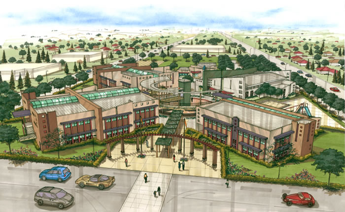 The Sharwin Charter School Academy will open a new seven-acre 700-student K-6 campus in the fall of 2004. This campus will include two-story classroom buildings, library and multi-purpose buildings for student and community use, and a child care center. Community involvement, expectations, and enthusiasm for this project are extremely high.